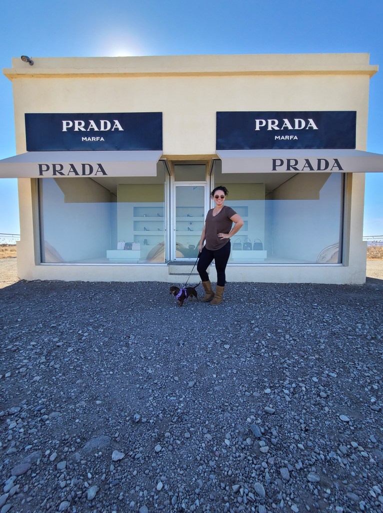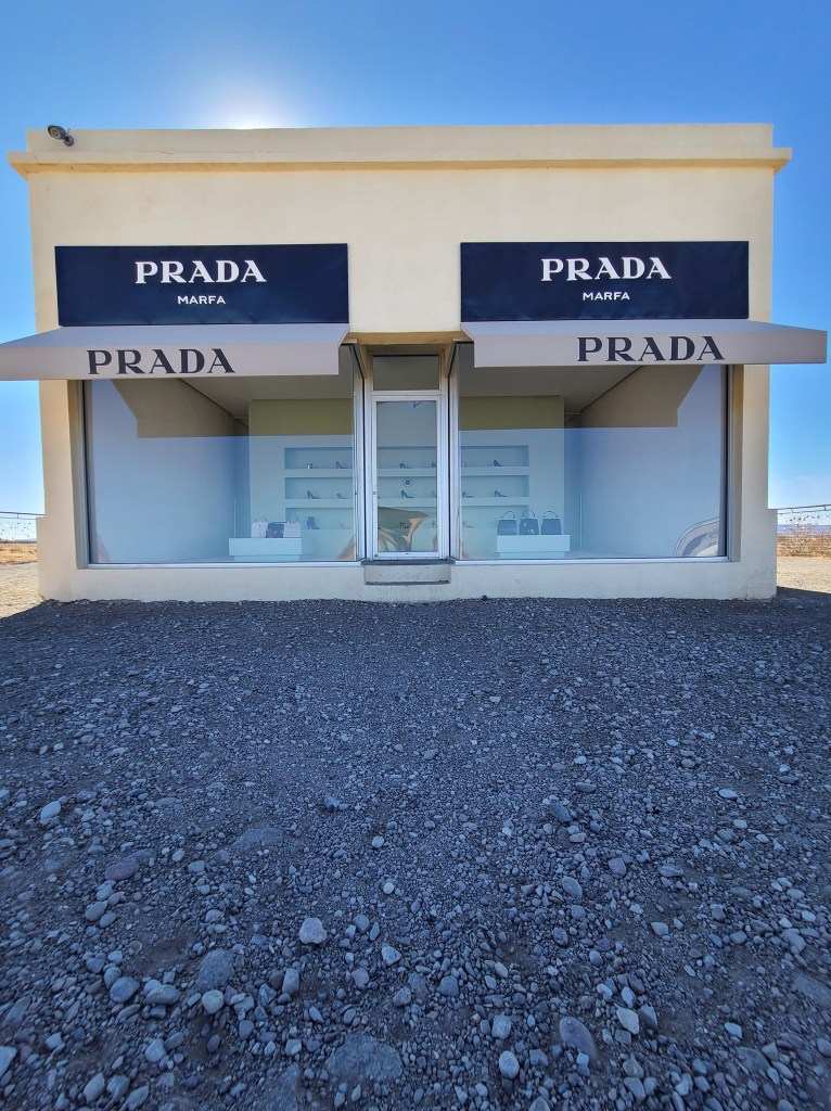 Ok, I poke fun, but let’s be honest, that’s what Prada Marfa is all about. To answer the question I know you’re thinking … no, it’s not a real Prada store. It’s a permanent land art project by artists Elmgreen & Dragset. It’s actually not even located in the town of Marfa, but is on Highway 90, just outside of the town of Valentine, TX.