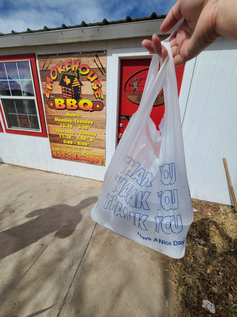 So we gladly obliged my Missouri-born BBQ loving fiancé, and found Smokehouse BBQ located right there in Alpine. Information is hard to find online, you’re not really sure of its hours until you’re there. It’s a blink and you’ll miss it sized establishment but they’re pumping out BIG Texas flavor!