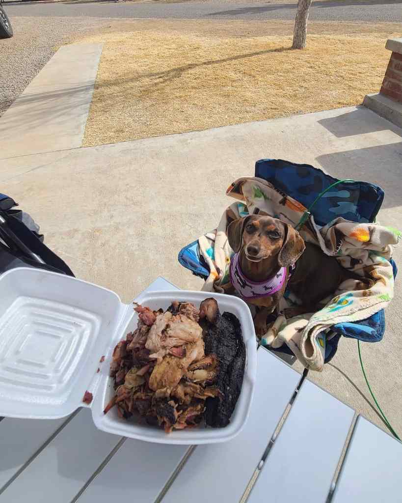 When I ordered the Doggy Snack Pack, I said hey, she’s a 7lb wiener dog, no need to go crazy on the size portions, a couple burnt ends will make her day. What we got was high quality meat that was as almost the same size as our portions!