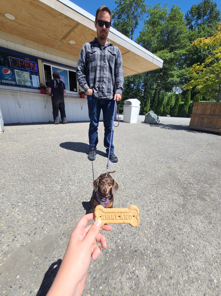 Butters was given many treats over the months and can’t pull up to a drive-thru to this day without expecting hellos and treats to be coming her way.